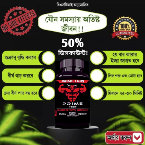 আর নয় হতাশা!!! এবার আপনি হয়ে উঠবেন একজন শক্তিশালী পুরুষ। আমরা আপনাদের মাঝে নিয়ে আসছি, বর্তমান সময়ের সবচেয়ে কার্যকারী একটা প্রোডাক্ট,Prime Test ভিটামিন ই সমৃদ্ধ।